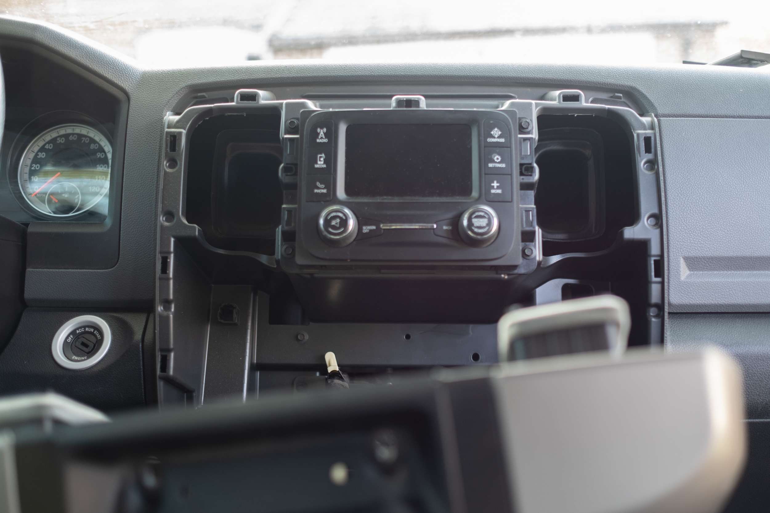 This Ram 1500 came as the STS package. It has a tiny 4 inch center screen that served as the backup monitor. This is just too small to serve the intended purpose of seeing what is behind a huge truck. So i had to fix that.